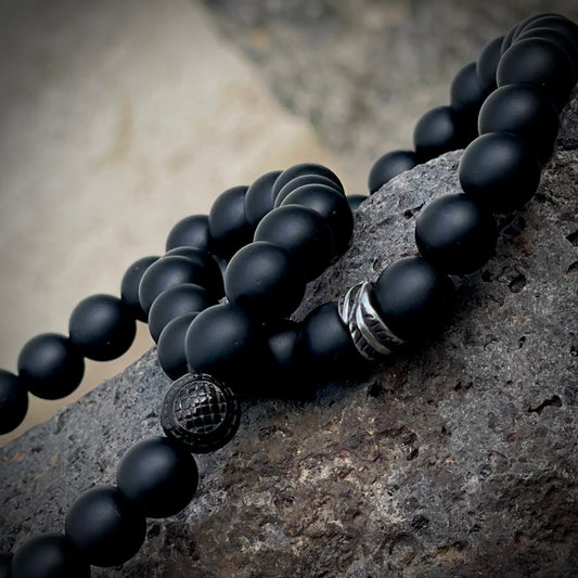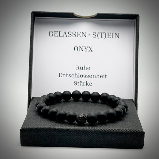 Armband Onyx "Gelassen S(t)ein - 8mm Perlen & Edelstahzwischenteil