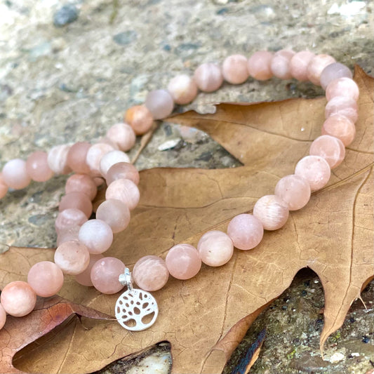 Armband Sonnenstein "Positiv S(t)ein" mit 6 mm Perlen und Lebensbaum aus Sterling-Silber