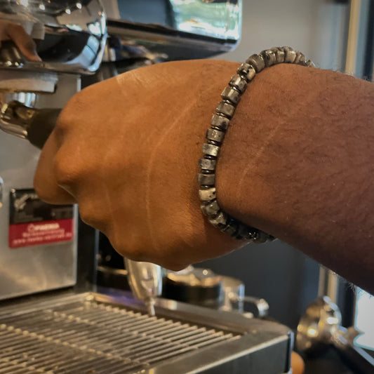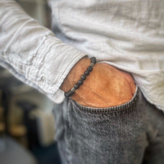 Armband Lava "Voller Energie S(t)ein" mit 8 mm Perlen und Hämatit Elementen