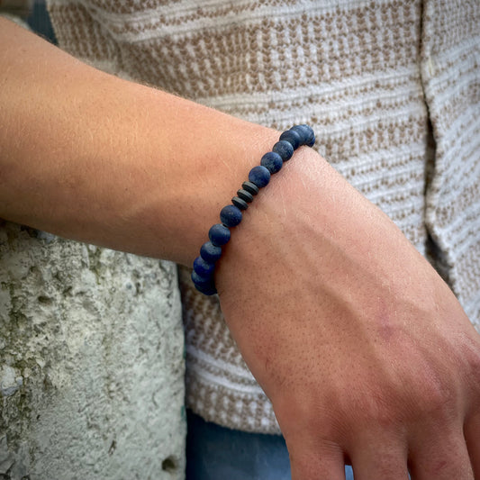 Armband Lapislazuli „Selbstbewusst S(t)ein“ mit 8 mm Perlen und Hämatit Highlight