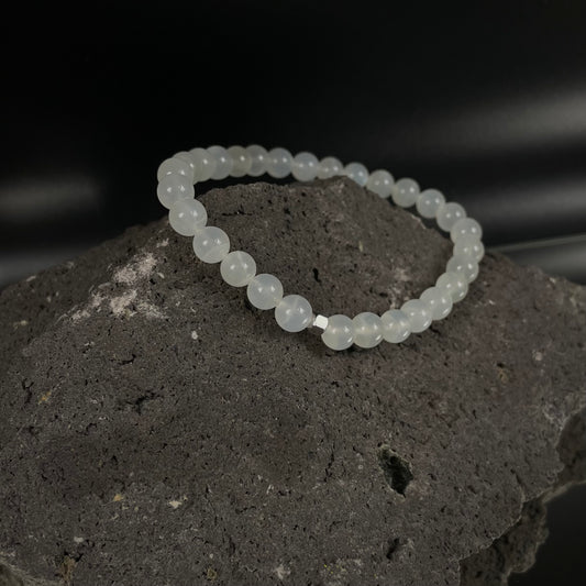 Armband Mondstein "Ausgeglichen S(t)ein" mit 6 mm Perlen und Edelstahl-Mutter