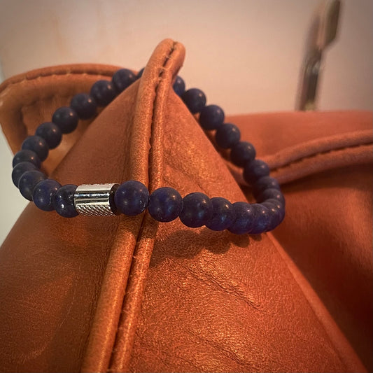 Armband Lapislazuli „Selbstbewusst S(t)ein“ mit 6 mm Perlen und Edelstahl Highlight