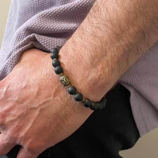 Armband Onyx „Gelassen S(t)ein“ mit 8 mm Perlen und Buddha-Zwischenteil