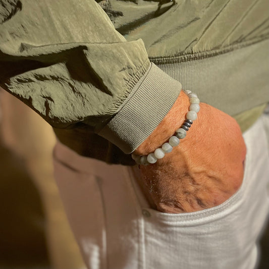 Armband Labradorit „Kreativ S(t)ein“ mit 8 mm Perlen und Hämatit Highlight