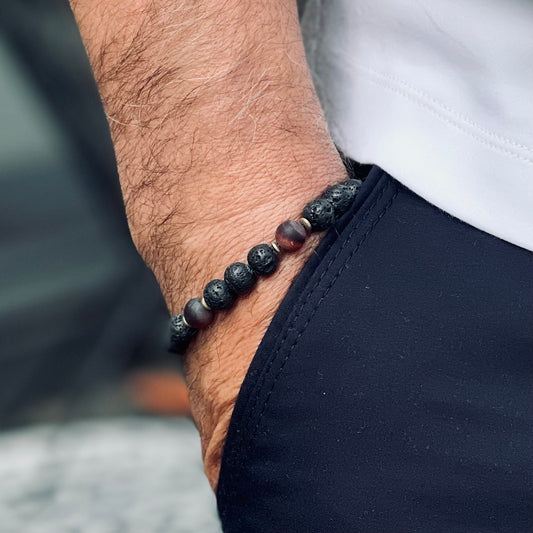 Armband Lava „Voller Energie S(t)ein“ mit 8 mm Perlen und Hämatit Highlight