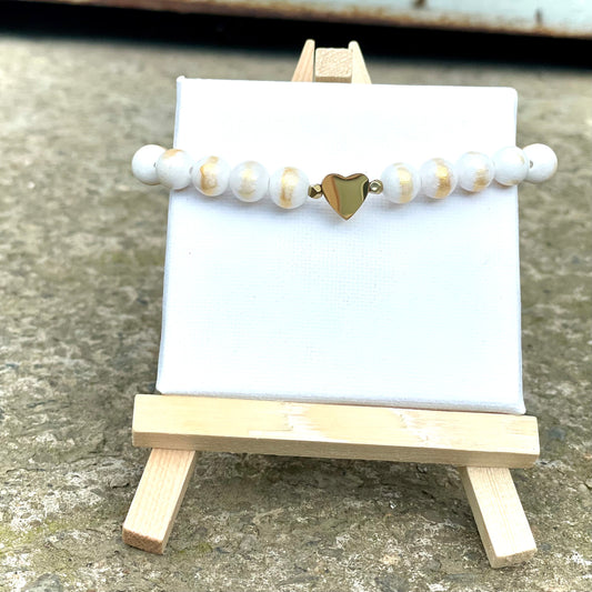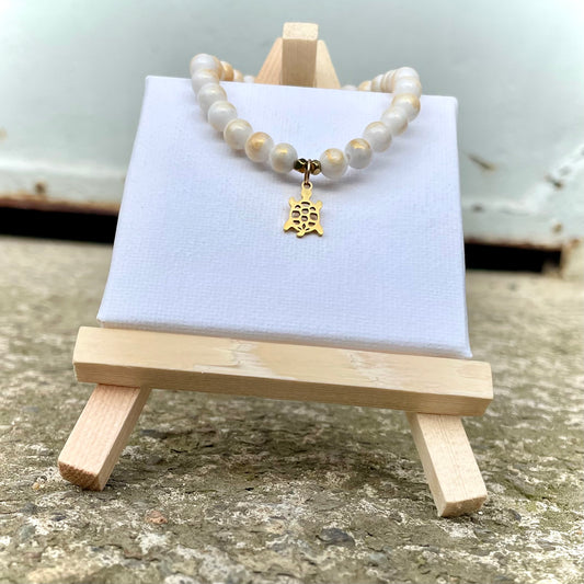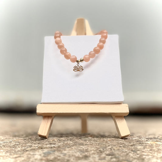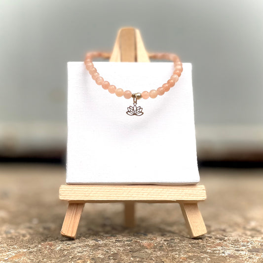 Armband Mondstein „Ausgeglichen S(t)ein“ mit 6 mm Perlen & Lotus- oder Smile-Anhänger (Gold)